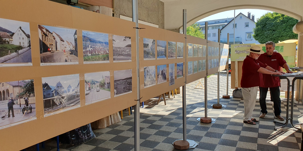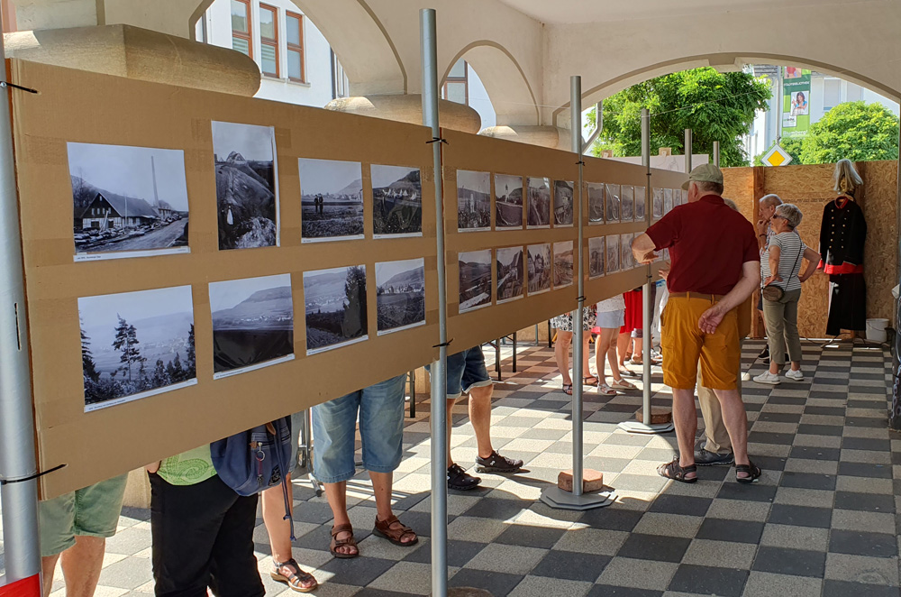 Bei den letzten Events war eine Bildergalerie mit historischen Fotos von Blumberg das zentrale Element. Auf ca. 14 m langen Bilderwänden wurden 120 historische Aufnahmen von 1910 bis 1970 im Format DIN A4 mit entsprechender Legende ausgestellt.