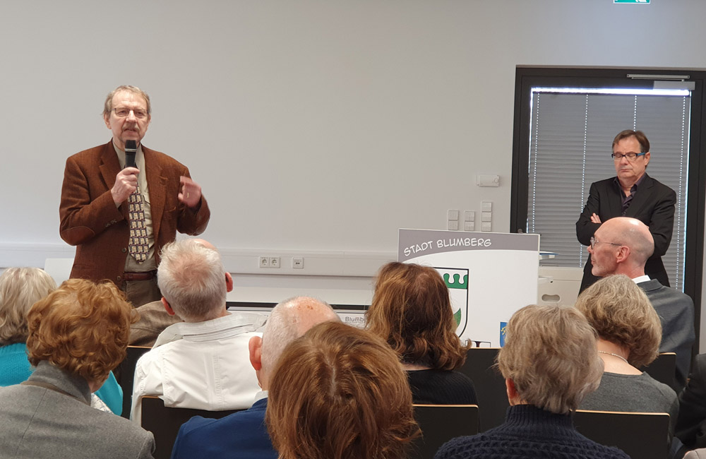 In einem Vortrag erläuterte Dr. Wolf-Ingo Seidelmann seine Forschungsergebnisse zum Thema 'Zwangsarbeit in Blumberg unter den Nationalsozialisten'. Der Schweizer Historiker